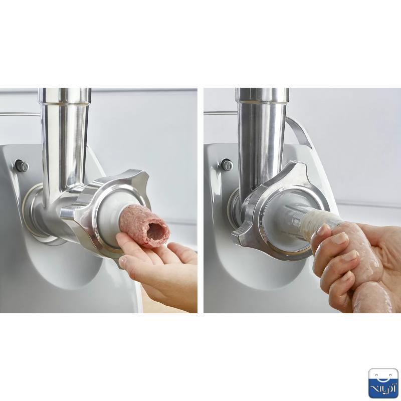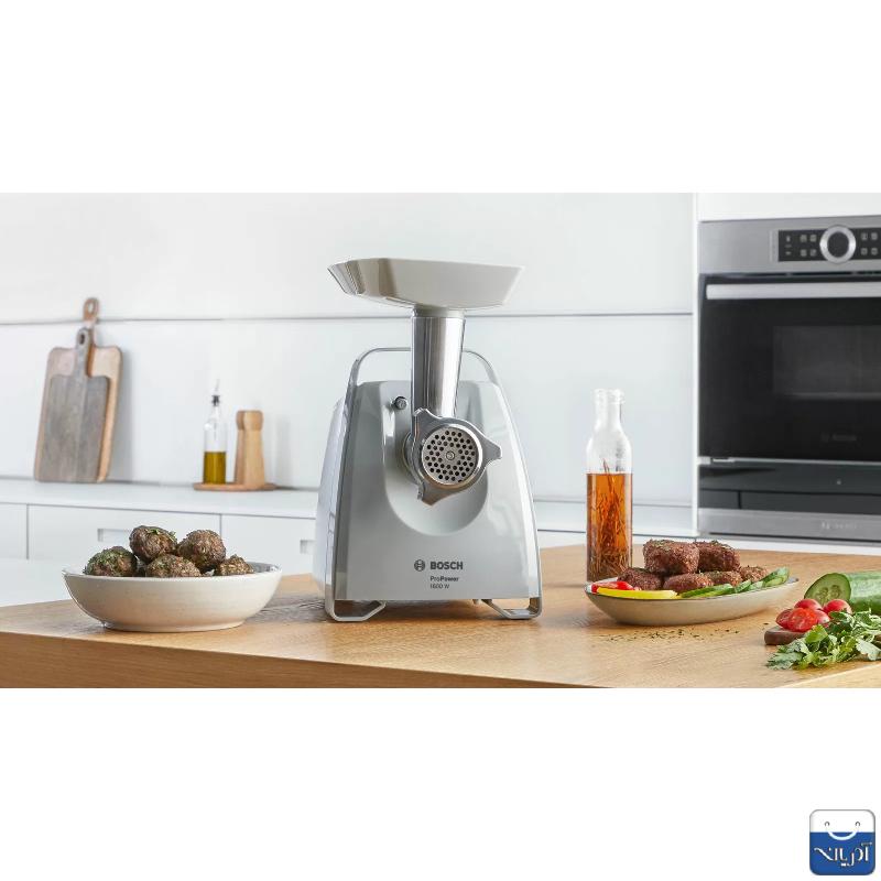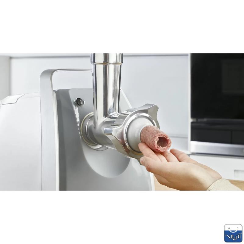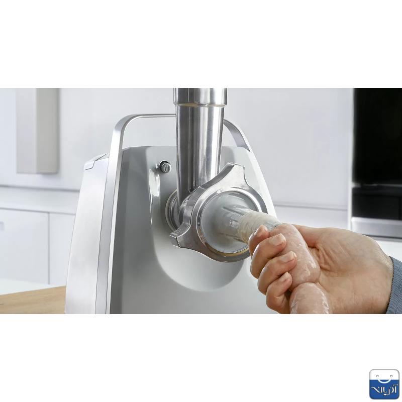 چرخ گوشت MFW45020 بوش با توان 1600 وات قابلیت چرخ نمودن انواع گوشت و مواد غذایی را در کمترین زمان (2.7 کیلوگرم در دقیقه) دارد. این دستگاه دارای 2 شبکه استیل ضد زنگ با ابعاد کوچک و متوسط می باشد. چرخ گوشت MFW45020 بوش بر روی پنل خود دارای کلید روشن و خاموش و عملکرد چرخش معکوس می باشد. عملکرد چرخش معکوس زمانی به کار می رود که دهانه دستگاه با گوشت یا استخوان مسدود شده باشد و با فشردن این کلید تمامی مواد برگشت داده می شود تا دوباره آن را چرخ نمود. لوله ناودانی چرخ گوشت به صورت چرخشی بسته می شود و با بسته شدن کامل آن، کلید ایمنی آزاد می شود. این دستگاه دارای قطعه کبه ساز و سوسیس ساز بوده که توسط آن سوسیس و کبه های سالم خانگی می توان تهیه نمود. سینی این چرخ گوشت از جنس پلاستیک مقاوم می باشد که می توان قطعات گوشت و مواد غذایی را روی آن قرار داد. پایه های دستگاه از جنس پلاستیک بوده که از حرکت و لغزش حین کار جلوگیری می نماید. محفظه ای برای نگهداری شبکه ها و سیم داخل دستگاه تعبیه شده است.
